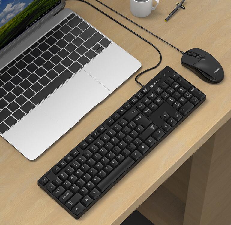 飛利浦鍵盤鼠標套裝USB有線電腦臺式筆記本辦公專用打字游戲機